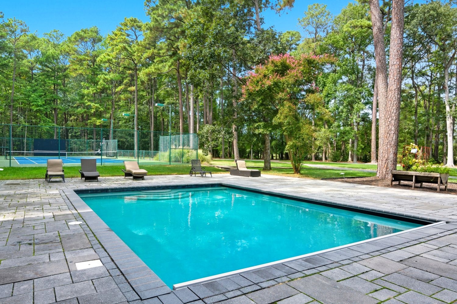 Large pavers provide both utility and elegance as they guide visitors through a shaded garden oasis.