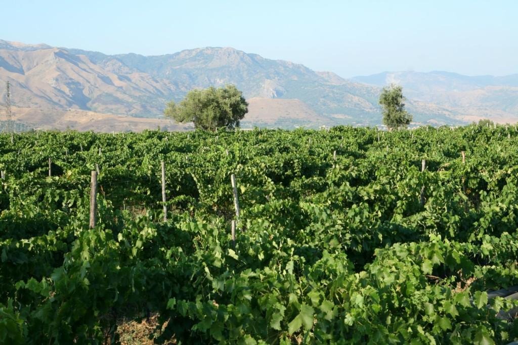 Earthy tones and patterned curtains harmonize with deep salmon walls, creating a tranquil and sophisticated guest space.