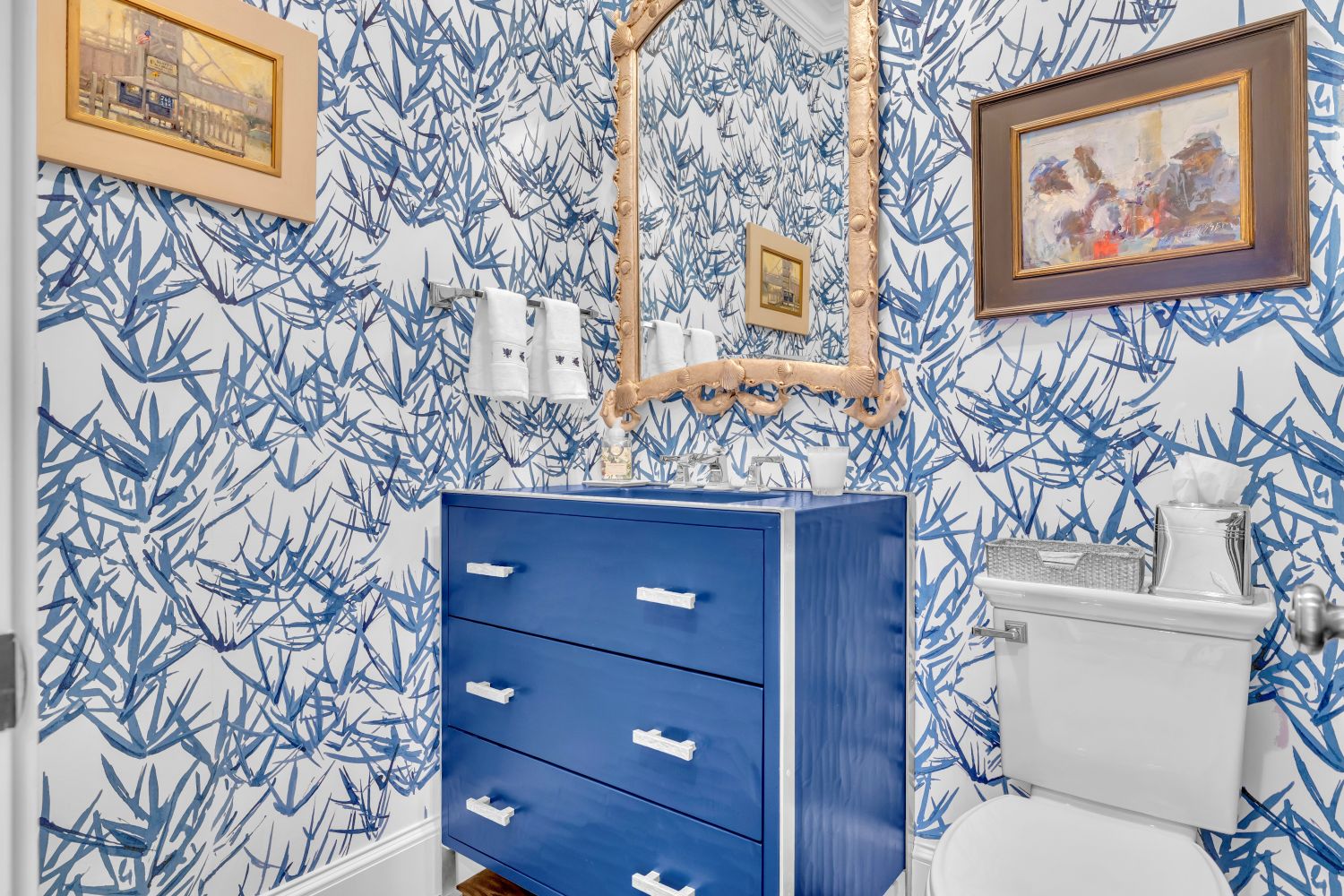 Whimsical details and blue tones transform this compact powder room into a stylish and functional retreat.
