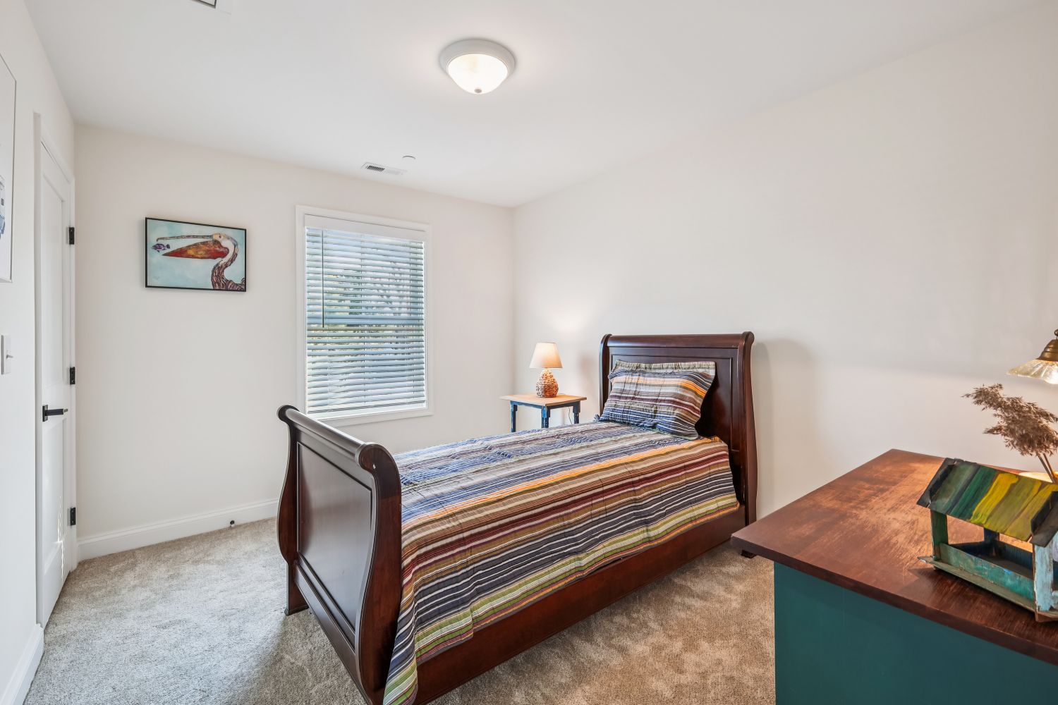 The middle guest bedroom is a flexible space that could also be an office with a daybed for guests.