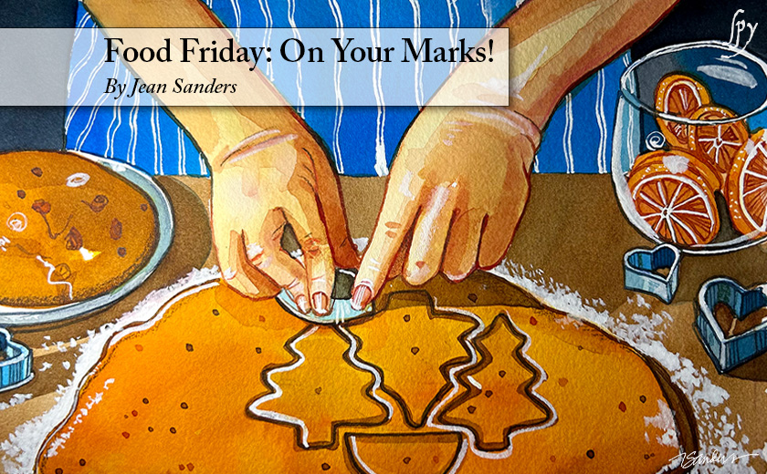 I stopped by the post office early yesterday morning, before 9:00, before the counter was open, to pick up some stamps from the machine in the lobby, and already there was a queue of grim folks, their arms full of awkwardly shaped holiday parcels. That was on December 4th – and Christmas is still a couple of weeks away. The U.S. Postal Service has announced we should have all our packages in the system by December 17th if we have even the vaguest hope that they will arrive by the 25th. There can be no more dilly-dallying. It’s time to get cracking. To echo The Great British Bake Off – “On your marks. Get set. Bake!”