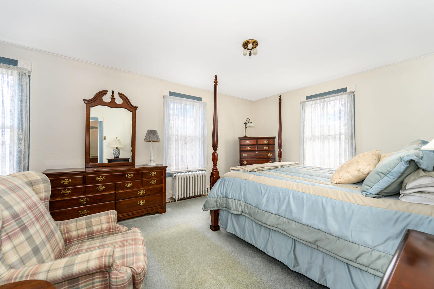 The largest bedroom is the primary bedroom located at the front corner of the house with three windows on the two exterior walls for abundant daylight. I noted the radiators for heating which to me is the best source of heat when combined with high velocity AC for thermal comfort.