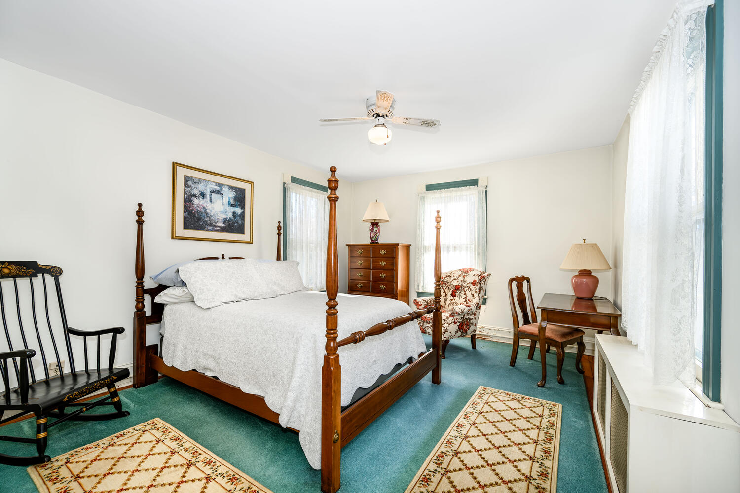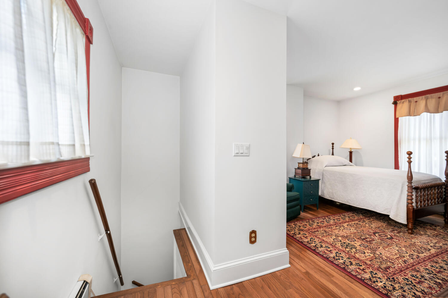 The third bedroom is located at the rear of the house and has the secondary stair leading to the first floor hall. The bedroom has windows on all three exterior walls for sunlight throughout the day.