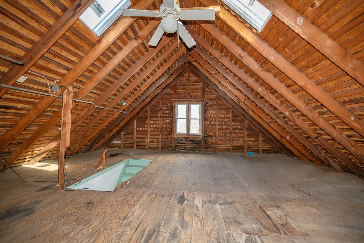 Unfinished yet full of potential, this attic’s skylights and gable windows create a foundation for a future office or recreation space.