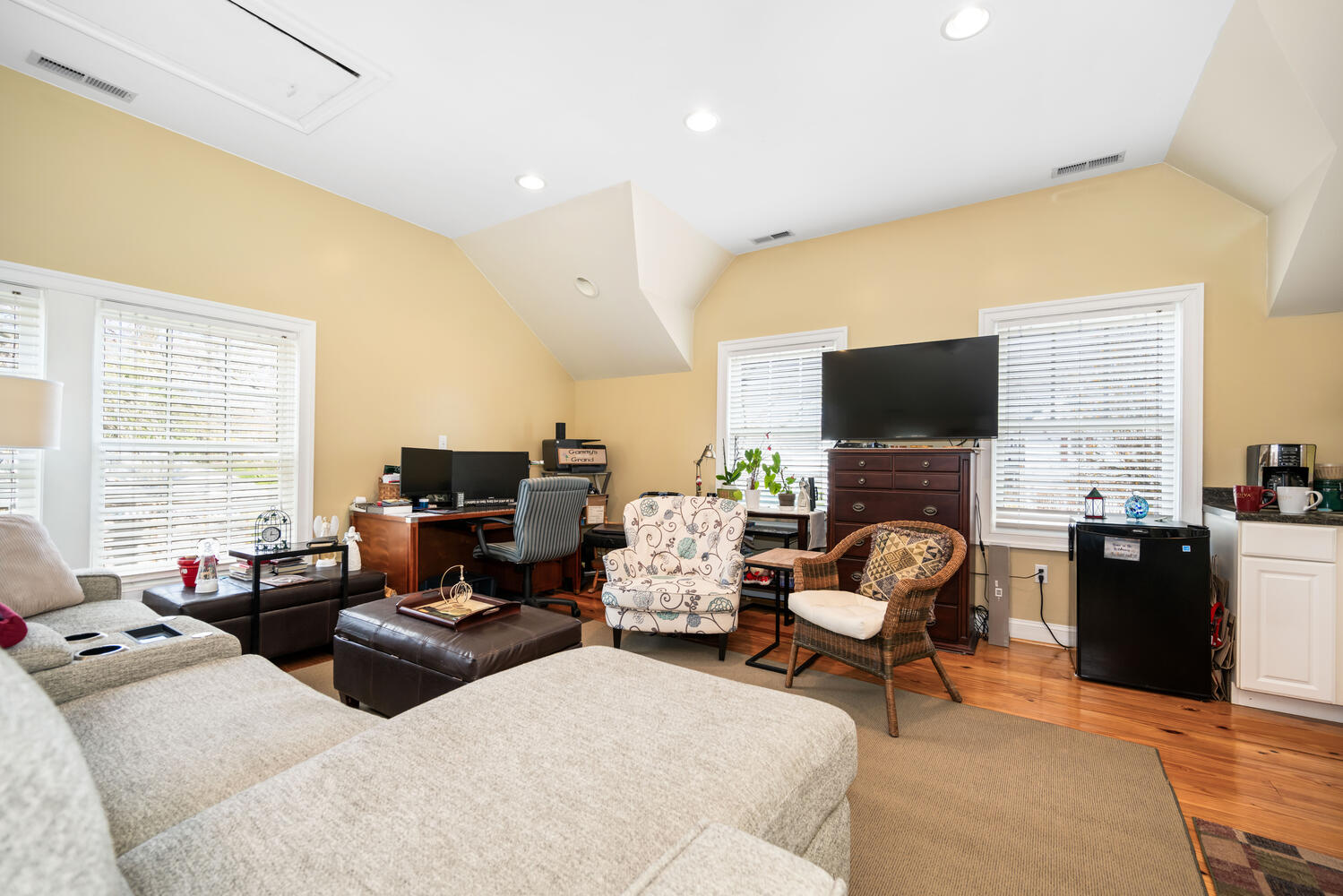 The apartment’s front gable wall with the two windows and the mix of flat and sloped ceilings creates delightful interior architecture. With a full bath, stack W/D and mini-kitchen, this bonus room with multiple windows would be hard to beat for extended stays.
