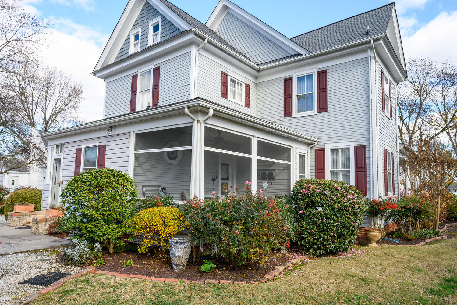 This Queen Anne and Victorian-inspired home, with its wrap-around porch, blends historic charm and modern functionality alongside the garage and guest apartment.