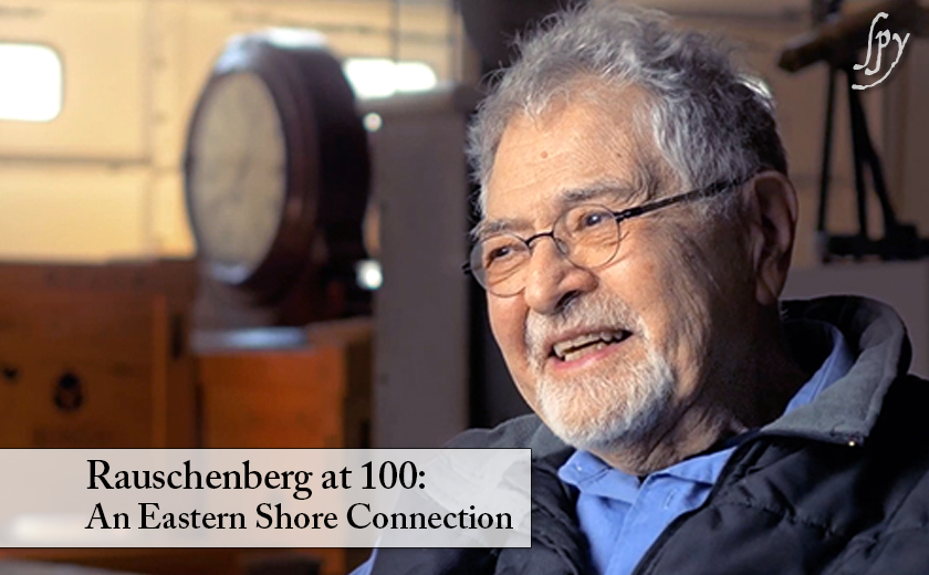 Rauschenberg worked closely with artist, art historian, and master printmaker Donald Saff, known for his collaborations with Roy Lichtenstein, James Turrell, and others. After an illustrious career at the University of South Florida, Saff moved to Talbot County and continued working with these major artists at Saff Tech Arts, his studio in Oxford. “Rauschenberg was making this work right here in Talbot County, which is insane to me,” Kasic said.