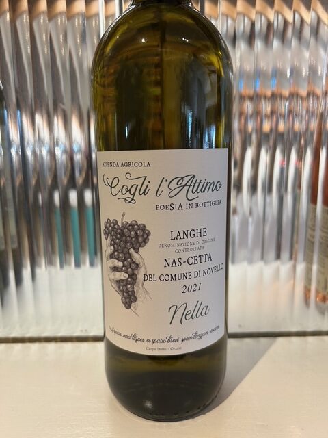This weekend at Piazza Italian Market we will taste a white wine from the Langhe Nas-Cetta del Commune di Novello 2021 ($26.99, 12.5% ABV) from the Azienda Agricola Cogli l’Attimo in Novello, Piemonte. “Cogli L’Attimo” translates as “seize the moment”, which is a fitting phrase for how this wine has made its way to Piazza’s shelves. The grape’s name, nas-cetta, translates as “little girl is born” which is also fitting for a nascent winery as young as Cogli l’Attimo.